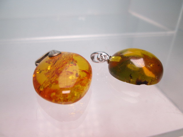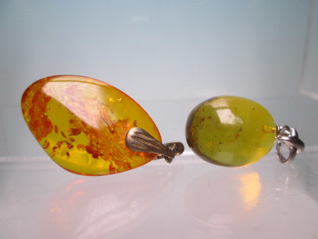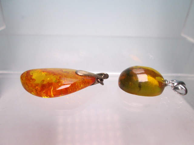 ☆SILVER 天然琥珀のペンダントトップ 2点で 4,94g