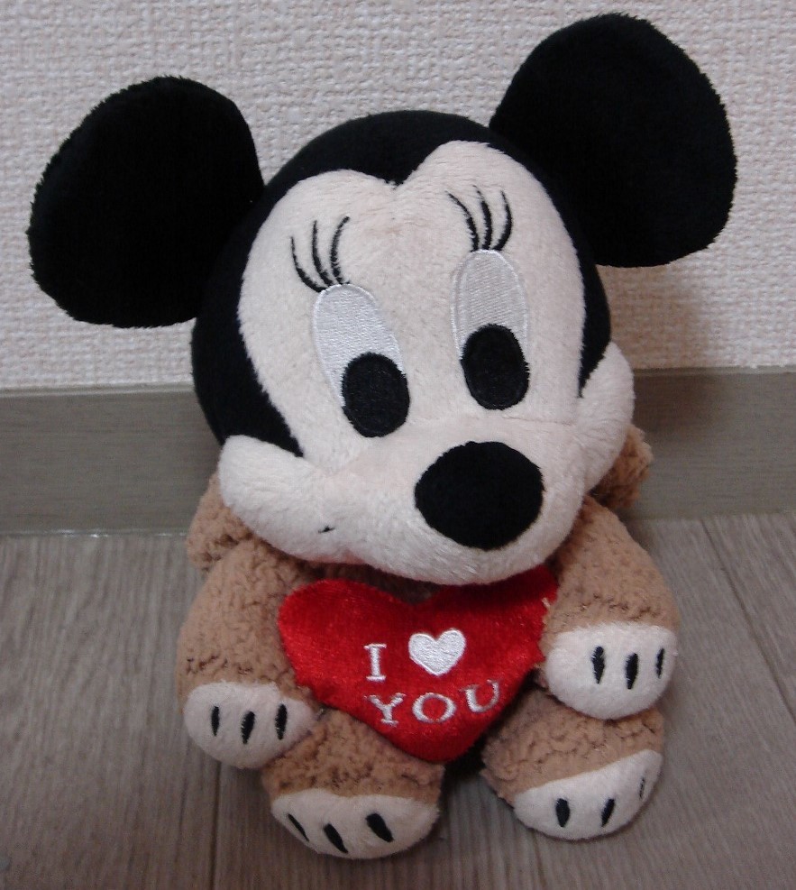 ◆ ディズニー Disney クマの着ぐるみ ミニーマウス ぬいぐるみ ベアーミニー ◆ ハートのメッセージ ◆ USED ◆