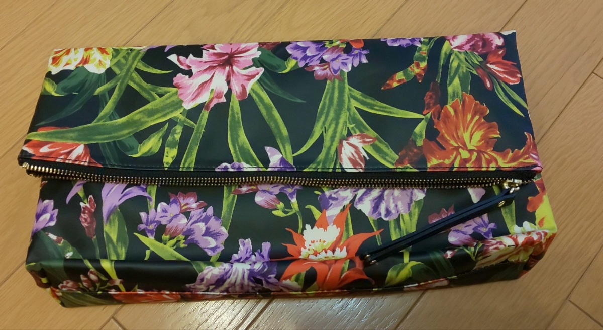 Pinky&Dianneピンキー&ダイアンのクラッチ、ドキュメントケースてす。表は黒地に花柄ですが、内側はビビッドなピンクです。未使用新品です。