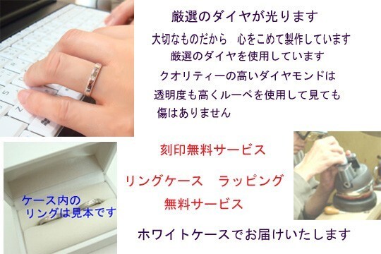 リングの内側に、日付やお名前など、 お好きな刻印を無料でお入れすることが出来ます。 刻印可能な文字 ★アルファベット大文字★ (ABCDEFGHIJKLMNOPQRSTUVWXYZ ) 数字(1234567890) 記号文字(& to . ) ★刻印例★ 【A to B】 【FROM HAJIME】 【2007.10.10 M to B】 ★文字入れ可能数★ 10~20文字程度 リングサイズ・デザインによって変ります (注) 通常は商品詳細にございます通り、ご落札 ご決済の確認から2週間で発送でございますが、年末年始 又夏季休業時には通常より発送を、1週間余分頂いております |