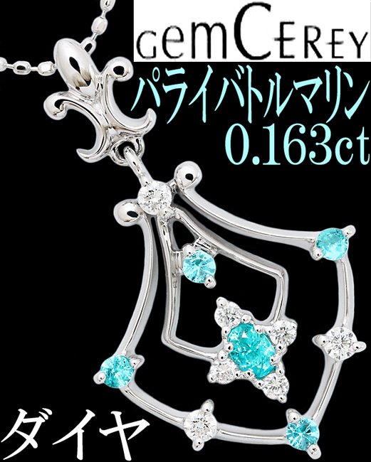 | 上質 綺麗☆パライバトルマリン 0.163ct ダイヤ 0.127ct ペンダント ネックレス K18WG ジェムケリー♪鑑別付・送料込 | ||