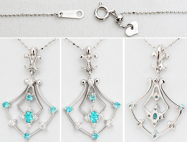 | エンハンスメントにつきまして | パライバトルマリンは他のトルマリン同様、もともと個々の宝石が持っている色を改善するための加熱処理が公に認められており、市販されているほぼ全ての石に加熱処理が施されています。こちらの商品も加熱処理が行なわれておりますが、品質上問題ございませんのでご安心ください。 | |