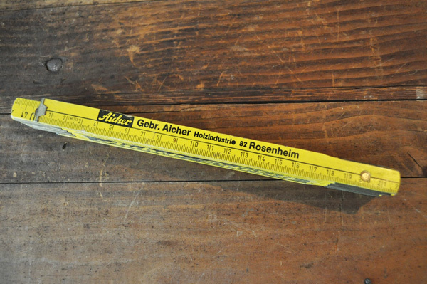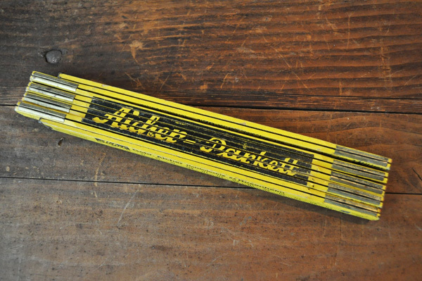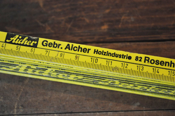 ドイツで見つけた古い折りたたみ定規です。 企業のノベルティだったようです。 定規としてはもちろんお使い頂けますが、飾って置くだけでも ディスプレイになります。 木製なので多少の傷、汚れ、傷み、擦れがございます。 予めご了承ください。 《買付け国》 ドイツ 《年代》 不明 《サイズ》 真っすぐ伸ばして2m 折りたたんだ状態で約23.5cm×3.5×1.5cm |