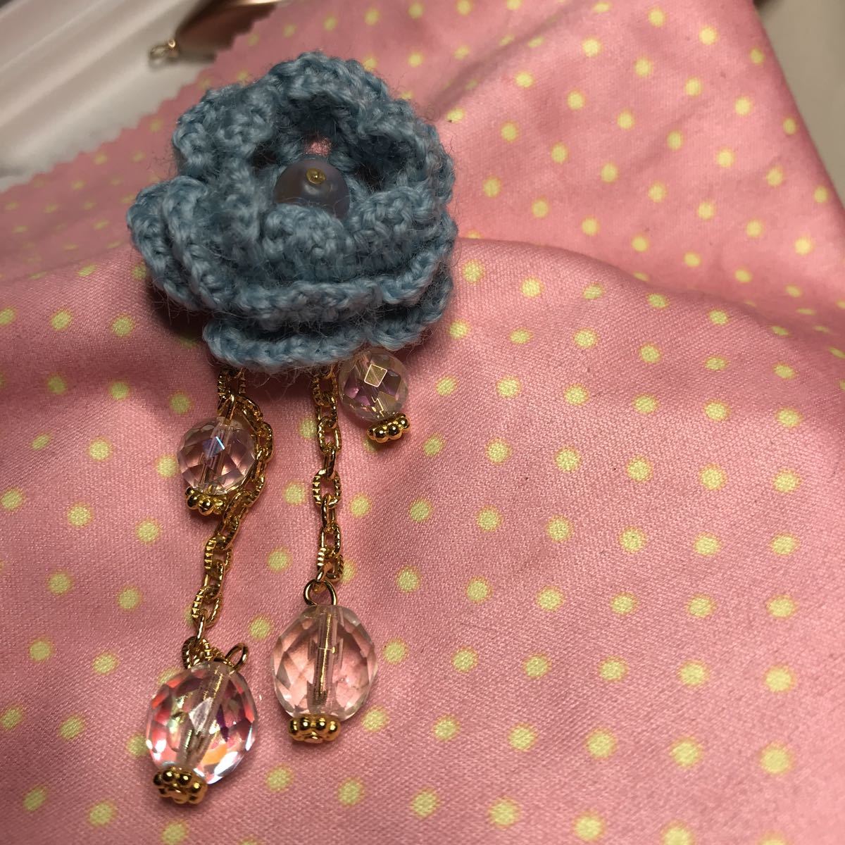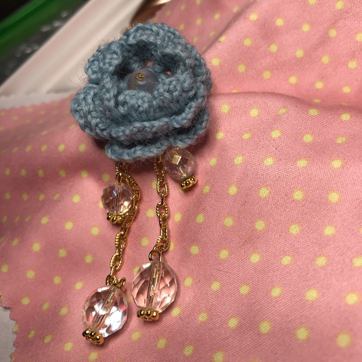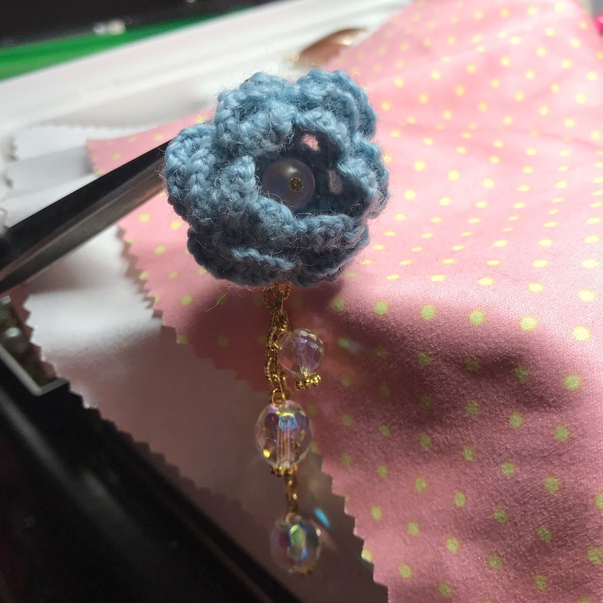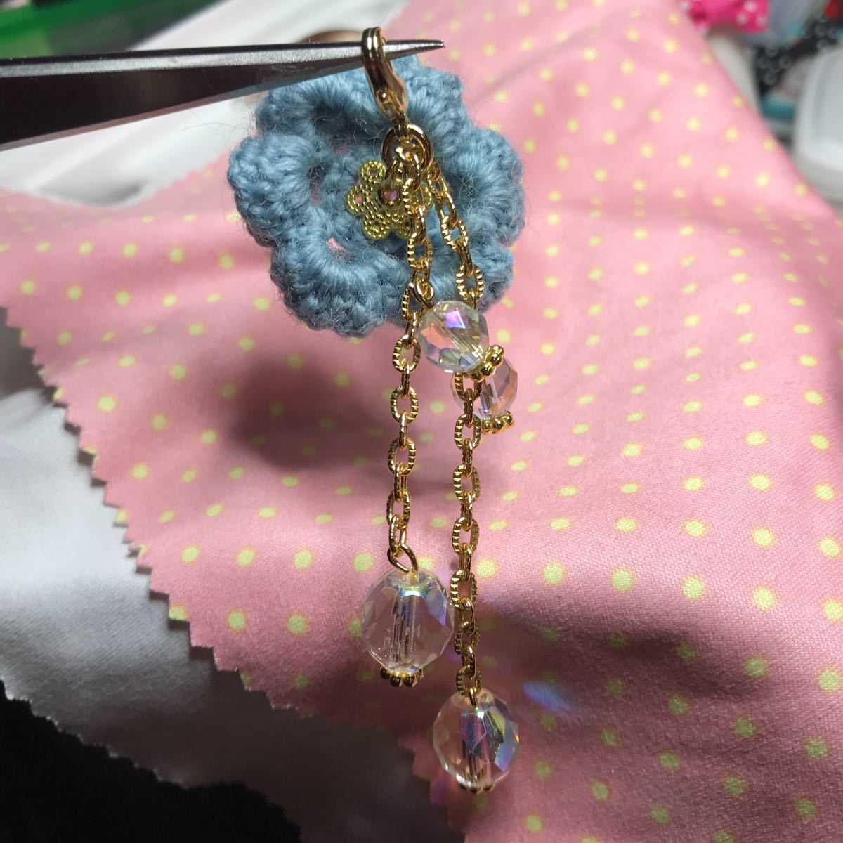 可愛い水色ニット花とキラキラアクアオーラでストラップにしてみました。とても可愛いくてこれからの季節にぴったりです