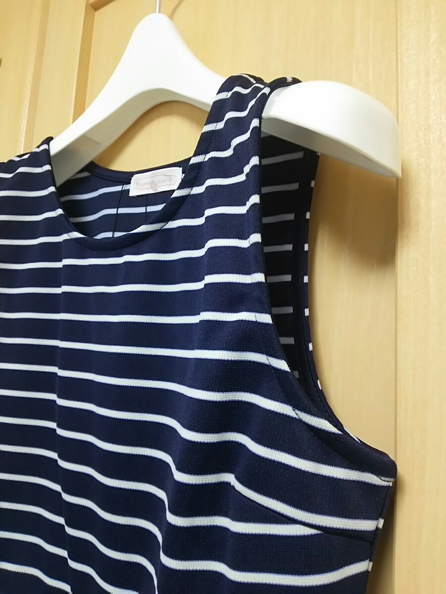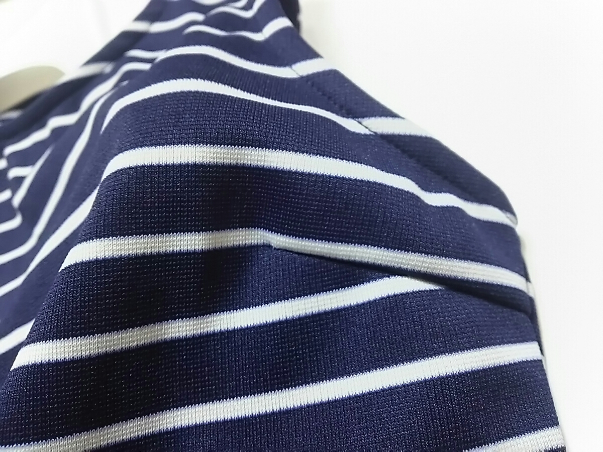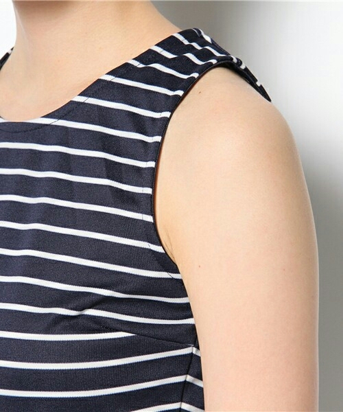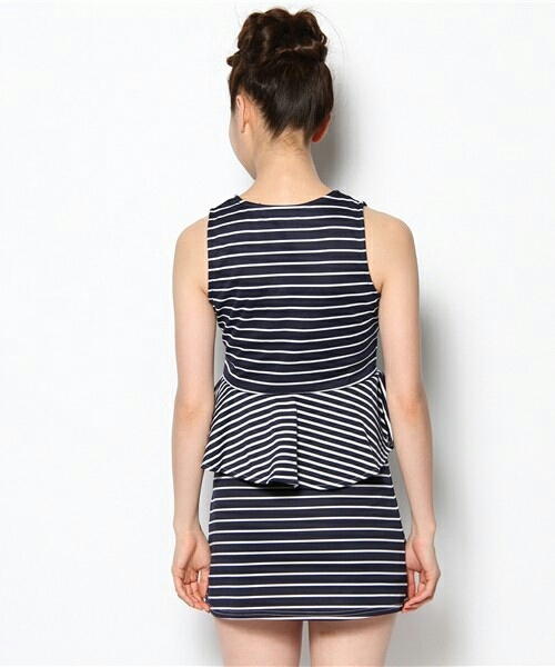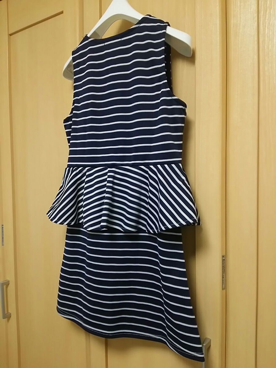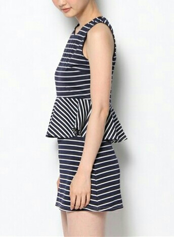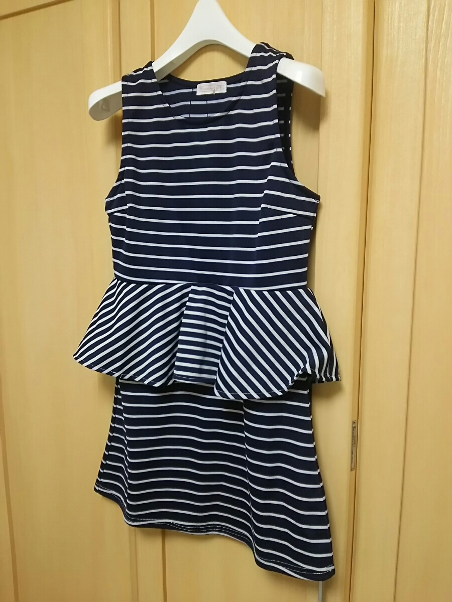 ペプラムを取り入れた、ボーダー柄のデザインワンピース。ペプラム部分はピッチの異なったボーダーを使い、遊び心がありながら着やせ効果も望めます。 ストレッチ素材です。