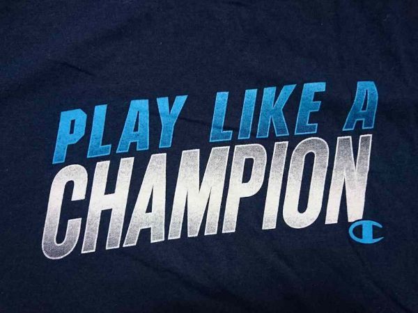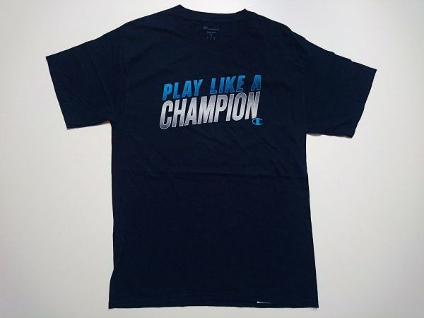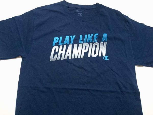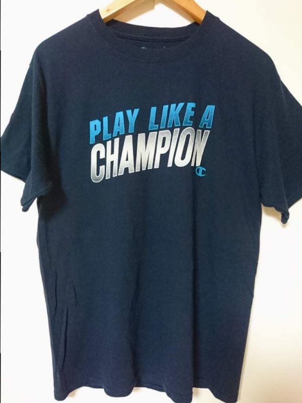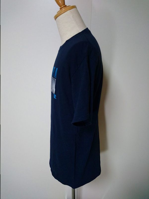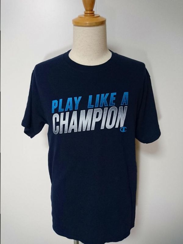 US USED チャンピオン Tシャツ 文字 プリント ロゴ【M】ネイビー