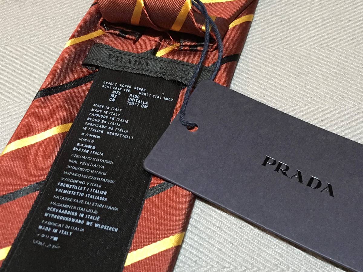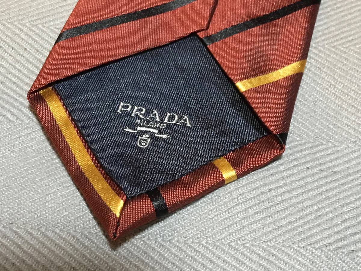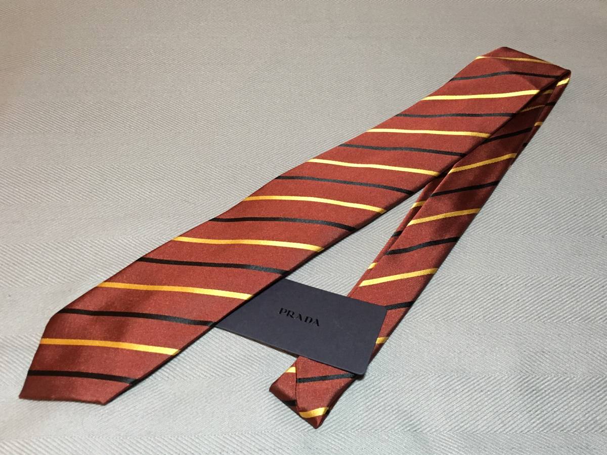 新品 タグ付き プラダ ネクタイ シルク100% イタリア製 レッド ブラウン ストライプ 柄
