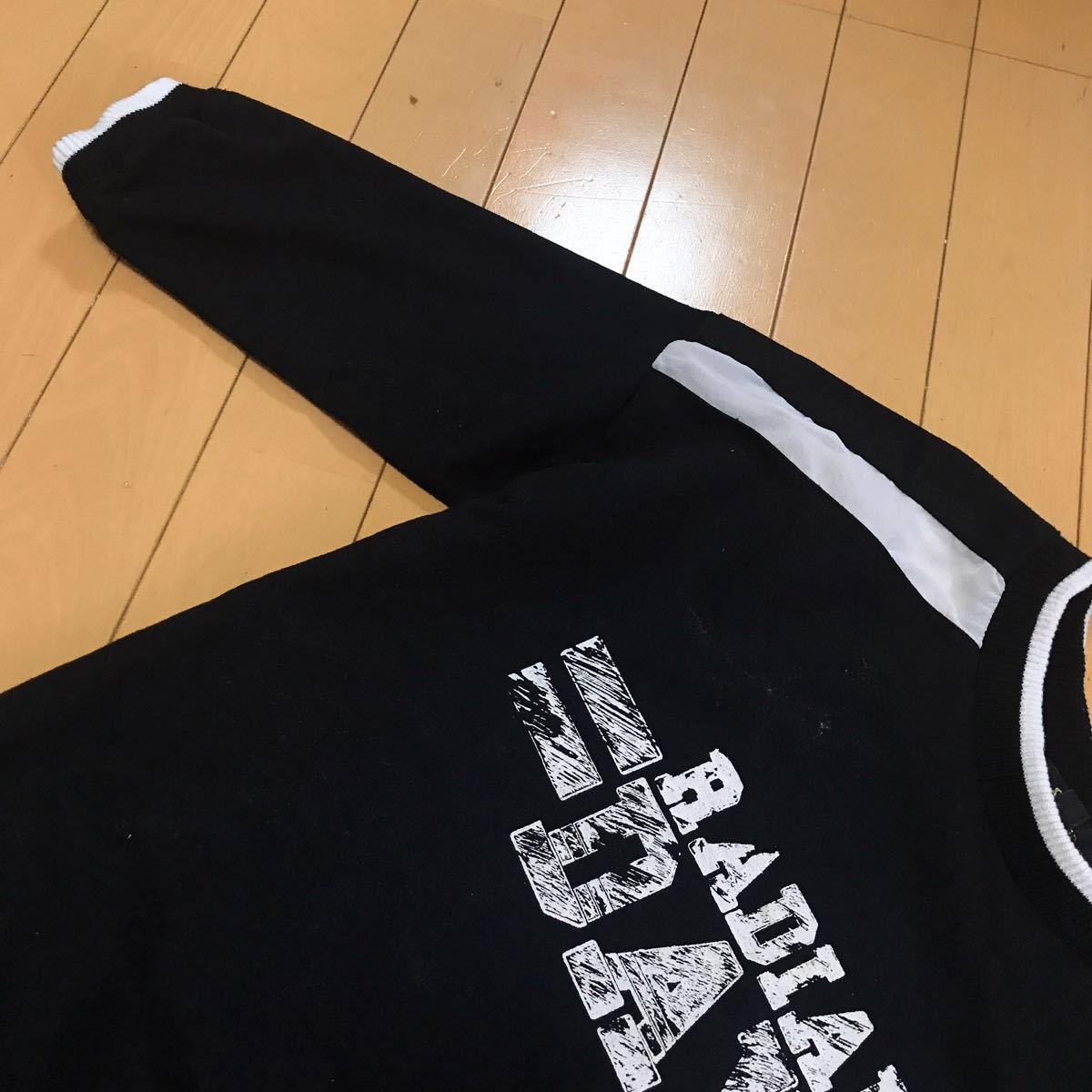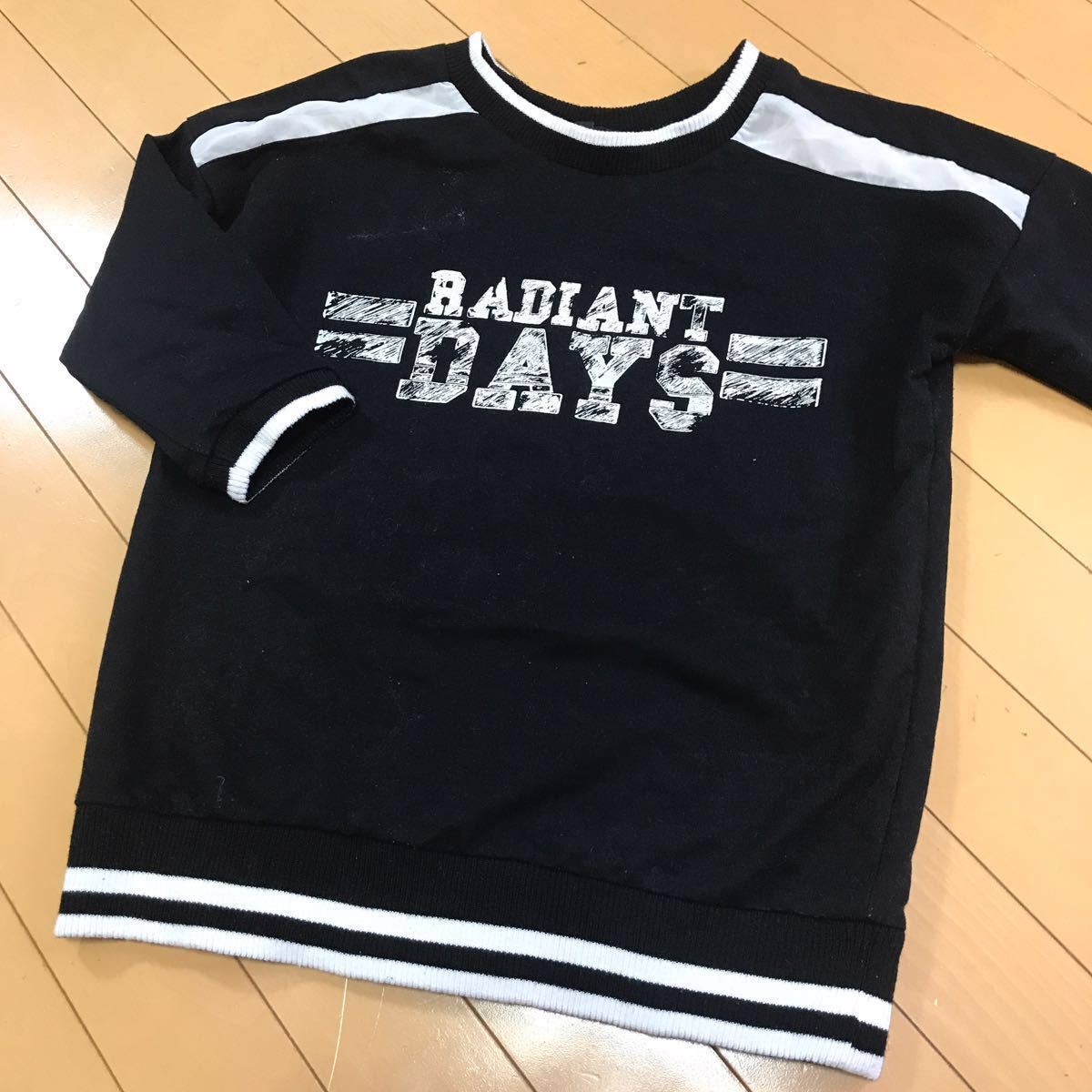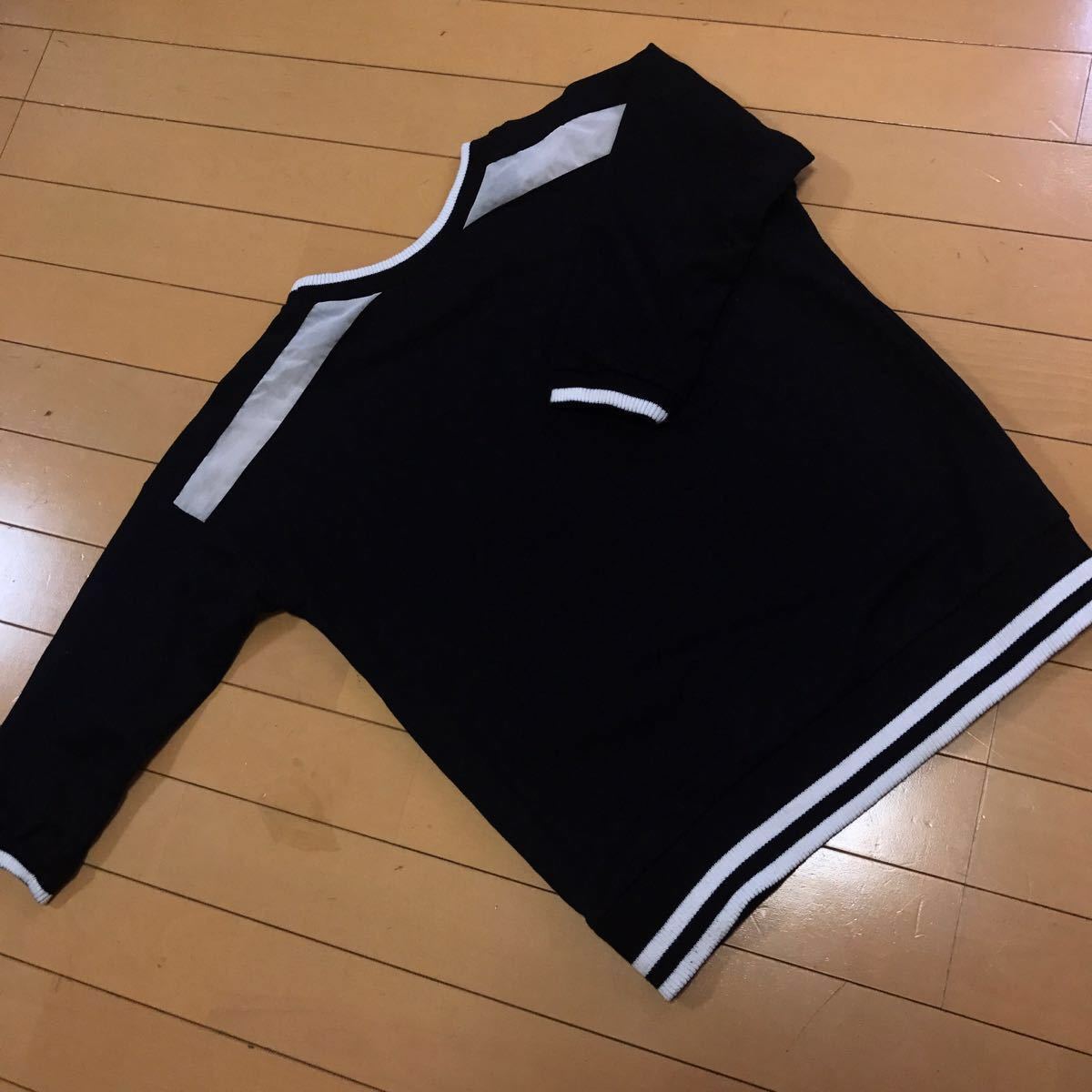◆肩の部分の前後白い部分はシフォン素材で透け感あります♪ロゴやラインがカジュアル可愛い七分袖スウェット