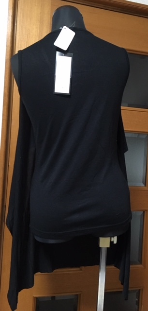 ★新品タグ付★★カジュアル綺麗目ジレ付き風チュニックタンクトップ♪黒M~L★薄手スベスベストレッチ生地♪重ね着風★