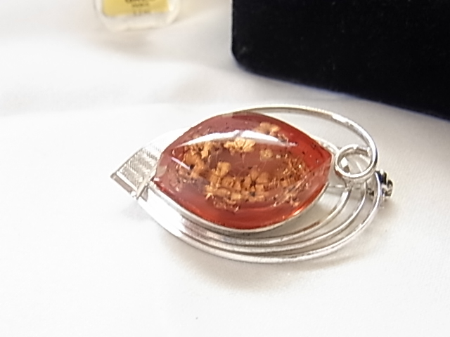 重厚感のあるべっ甲調 楕円菱形のような形状 お洒落なブローチ▽