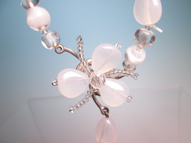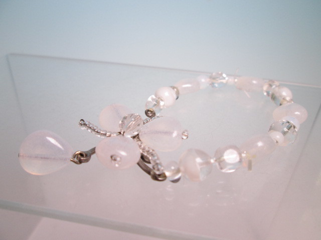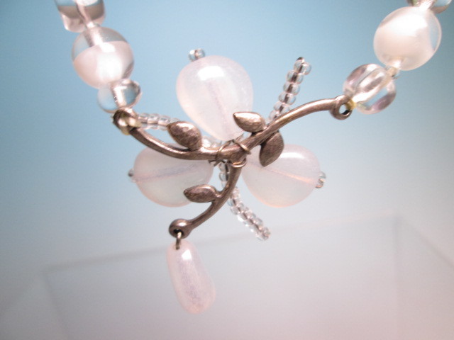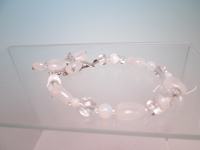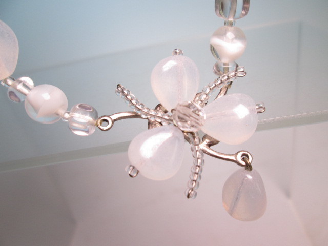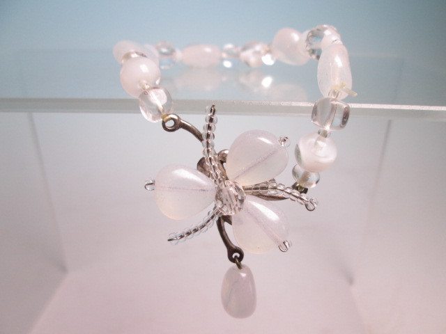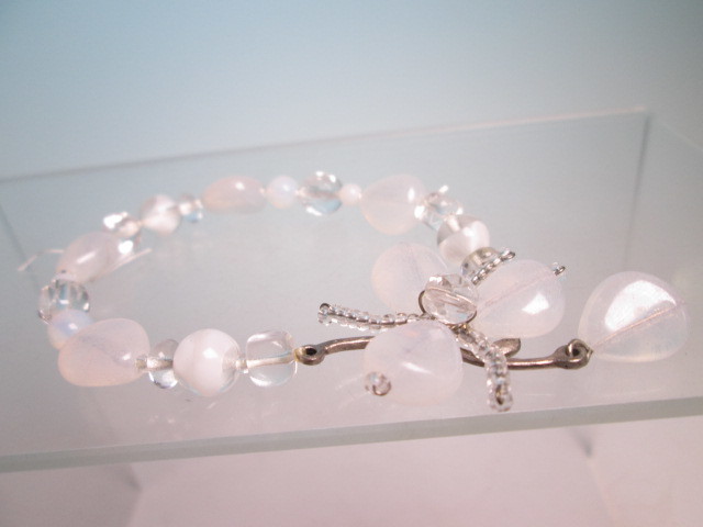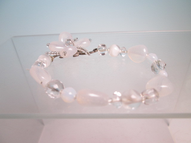 ☆乳白色硝子とビーズの花のブレスレット 16g フリーサイズ