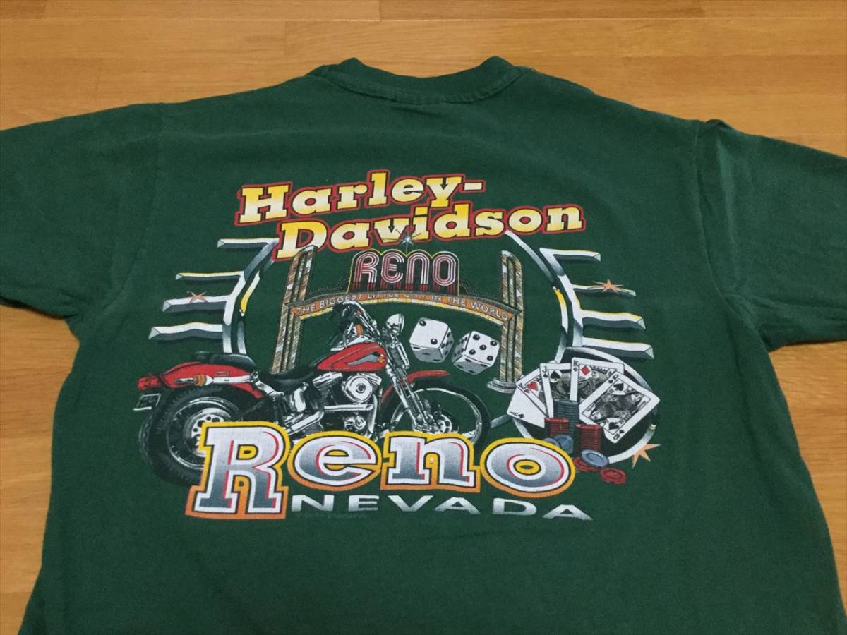 OLD HARLEY-DAVIDSON '94 Reno NV 緑 (M) ハーレー ダビッドソン Tシャツ 送料無料 MADE IN USA