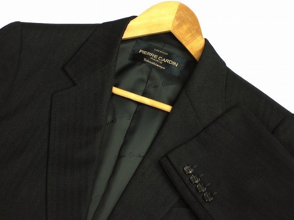 訳あり★PIERRE CARDIN ピエールカルダン×Takashimaya*黒ピンスト地柄*ウール100%*メンズ*2釦*テーラードシングルジャケット*M相当*秋冬