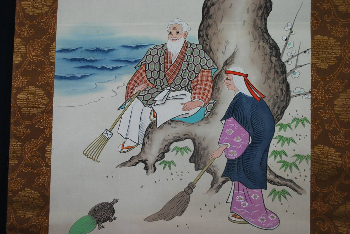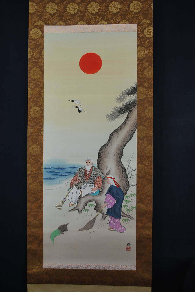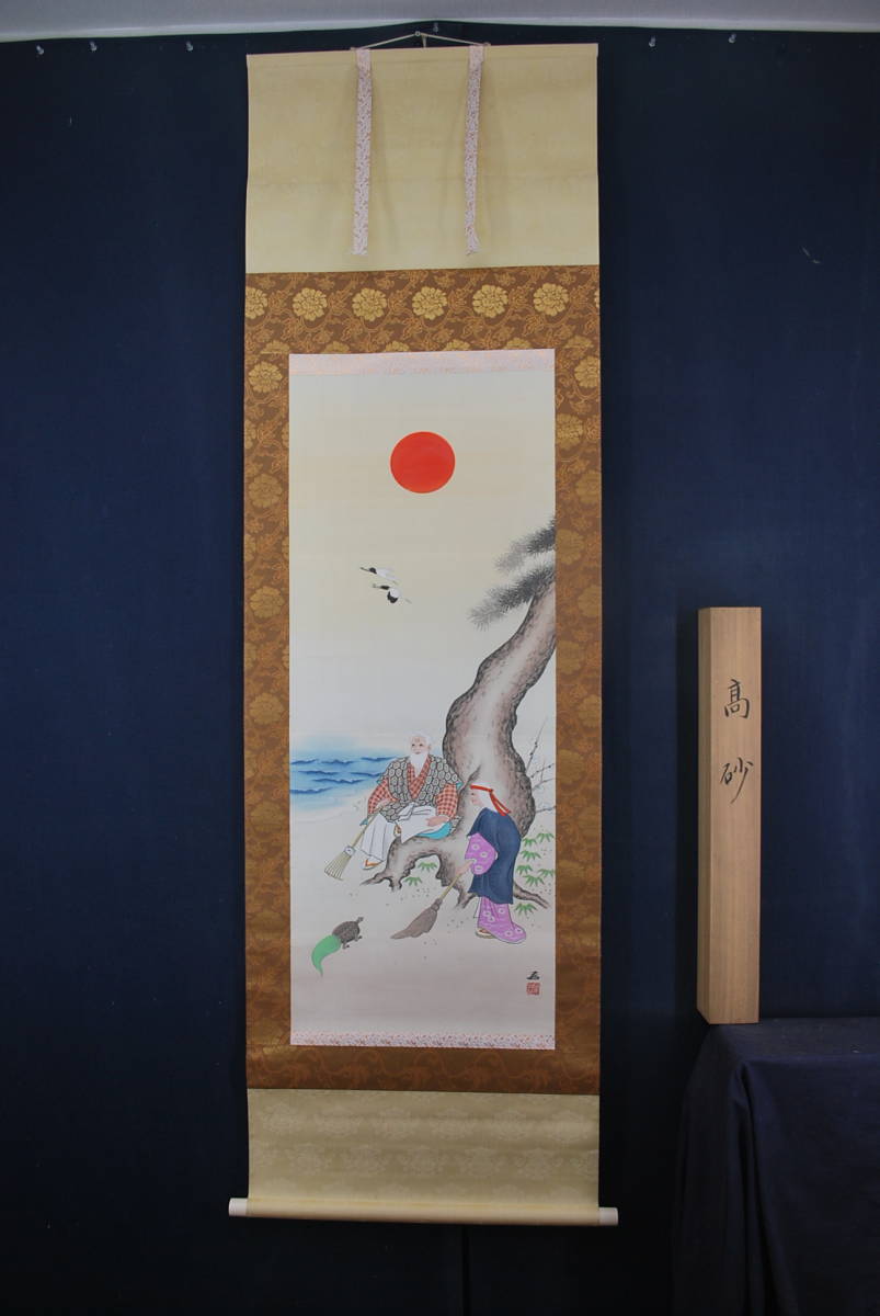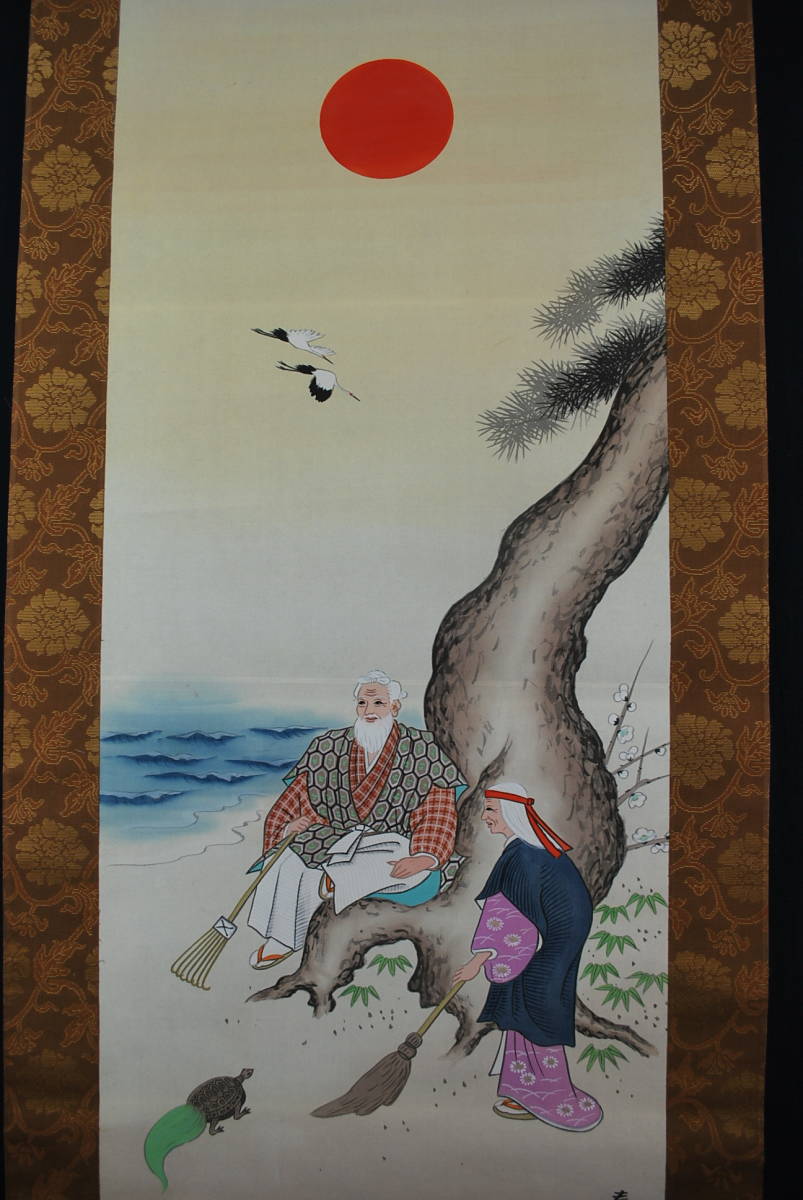 真作/寿/高砂図//掛軸☆宝船☆P-629 J