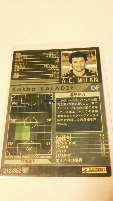 ☆WCCF2008-2009☆08-09☆212☆白☆カハ・カラーゼ☆A.C.ミラン☆Kakha Kaladze☆A.C. Milan☆