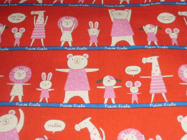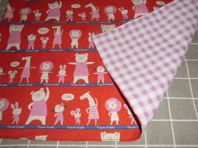 No.262 裏付ランチョンマット ハンドメイド  35x45 赤色アニマル 女の子