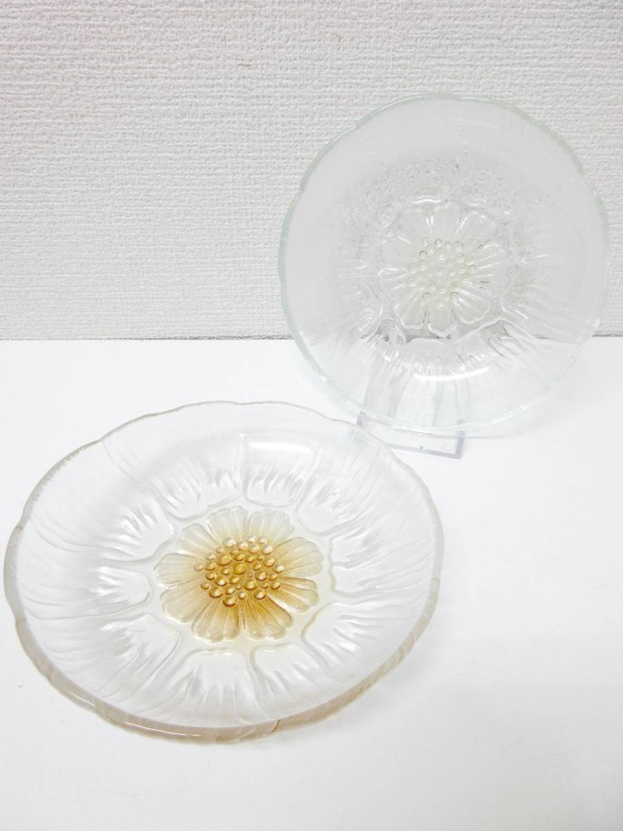 ☆今回ご紹介の商品は、ガラス皿  お花 色違い 2枚セット 美品