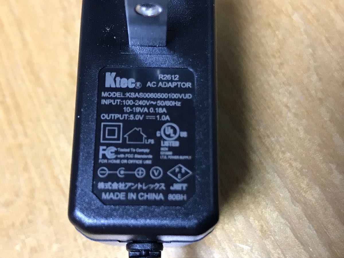 Ktec ACアダプター R2612 美品 KSAS0060500100VUD 10-19VA 0.18A 5V