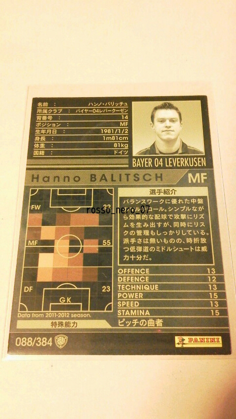 ☆WCCF2011-2012☆11-12☆088☆白☆ハンノ・バリッチュ☆バイヤー04レバークーゼン☆Hanno Balitsch☆Bayer 04 Leverkusen☆