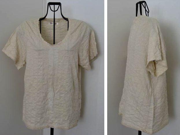 サイズMで、実寸では、(約、平置き) 肩幅 :34㎝ 袖丈 :21㎝ 身幅 :44㎝ 着丈 :60㎝ 素材 :綿80%、麻20% 色 :生成りベージュ系 製造元 :㈱オーセンティック USEDですが、ほとんど着用してないのでキレイです。 |