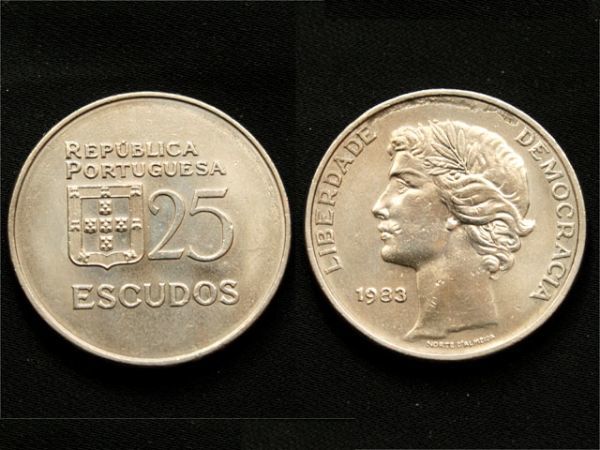 【ポルトガル】 25エスクード 1983年 5つの盾 白銅貨