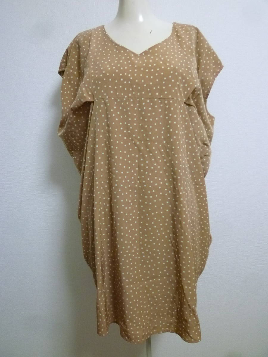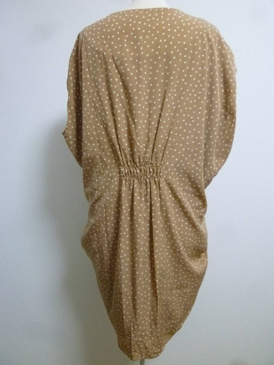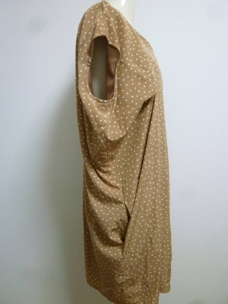 INDEX/インデックス♪ベージュ×白ドット柄ゆったりチュニックワンピースM/ワールド膝丈半袖水玉♪324