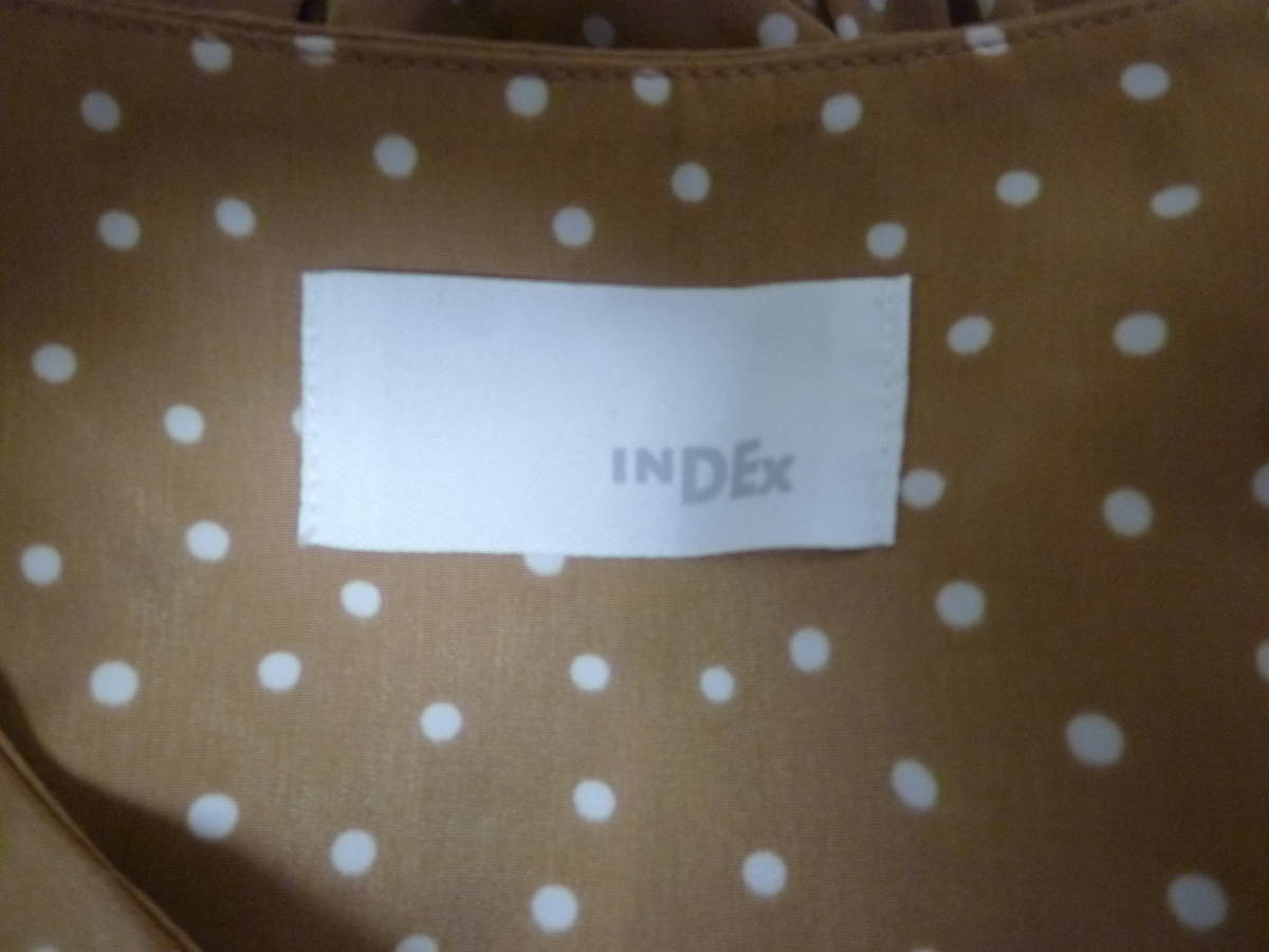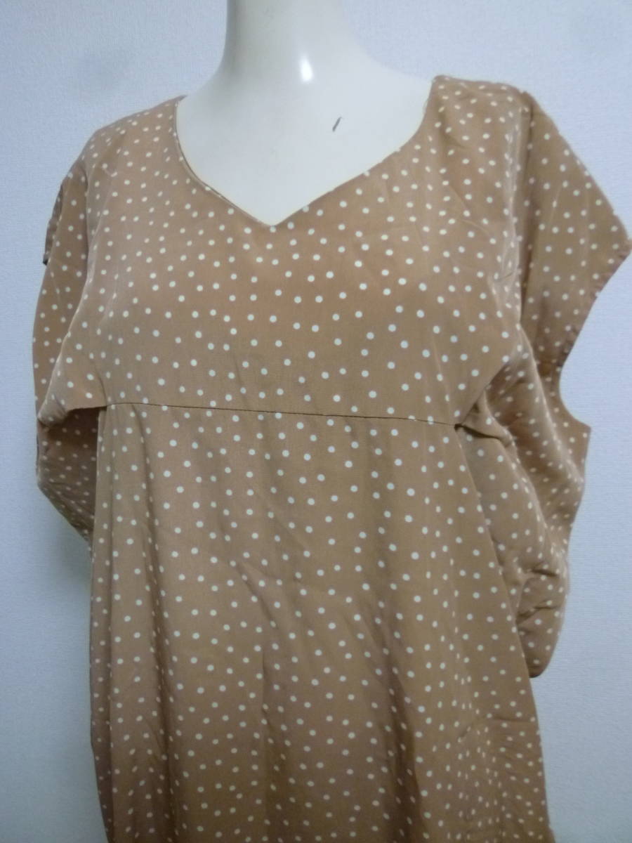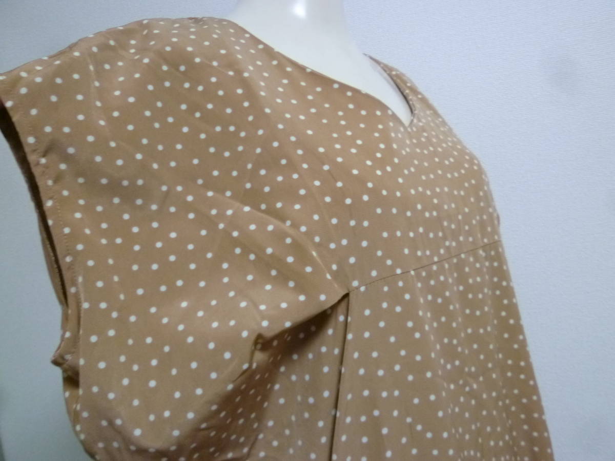 INDEX/インデックス♪ベージュ×白ドット柄ゆったりチュニックワンピースM/ワールド膝丈半袖水玉♪324