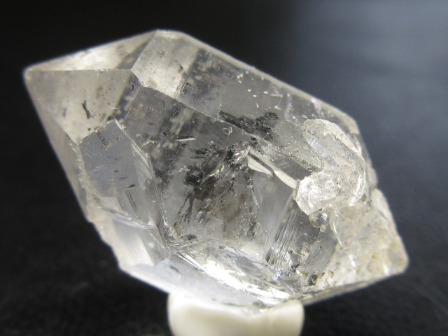 ご覧のように主に両端がポイント(ダブルターミネーター) となっており、内部に黒い内包物(炭素やマンガンと言われる) や太古の水を湛えていることが多い、大変に魅力的な水晶です。