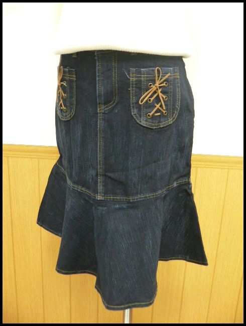 新品アウトレット品★NongJoJeans編み紐使いデニム フレアスカート サイズL/定価より50%OFF