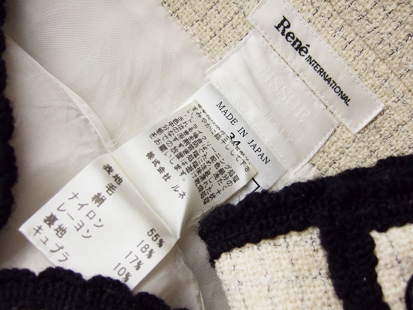 ![]() ![]() 落札後はオークション終了のお知らせメールに出品者からのメッセージが御座います。 自己紹介欄には急な休み等の記載をする場合が御座いますので一度お目通し頂きます様お願いいたします。ご一読の上オークション終了後2日以内の連絡、 落札後4日以内のご入金のお約束を守って頂ける方のご入札をお待ちしております。 小さい子供がおりますのでお急ぎのお取引を希望される方のご入札は遠慮下さいませ。 ---↓ここにブランド名記入---- ブランド名:Rene ルネ 株式会社ルネ ---↓ここに特徴記入---- 特徴:イタリアTISSUE社製生地使用高級ツイードコートです。オフ白地(淡いエクルベージュ系より)を基調に上質なシルク混ウールループ白ツイードに細かな黒色チェック柄。黒レーストリムが可憐さを添える。スマートラインの高級ロングコートです。 ---↓ここにサイズ記入---- サイズ : 34 表示(トルソーは9号です) 実寸(平置き採寸) 肩幅37cm、身幅40cm、袖丈57cm、ウエスト38.5cm、着丈91cm、ヒップ44cm、裾幅52cm、合わせ部7つボタン留、両サイドポケット ---↓ここに素材記入---- 素材 : 毛55% 絹18% ナイロン17% レーヨン10% 裏地 キュプラ100%