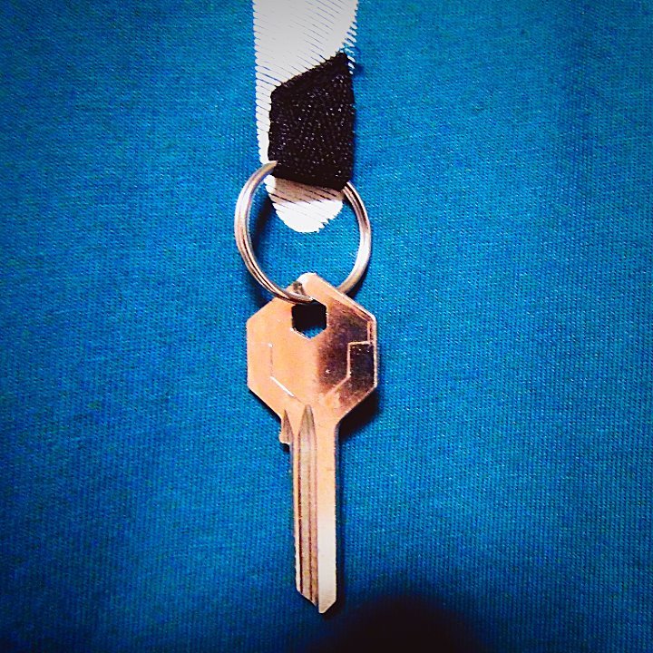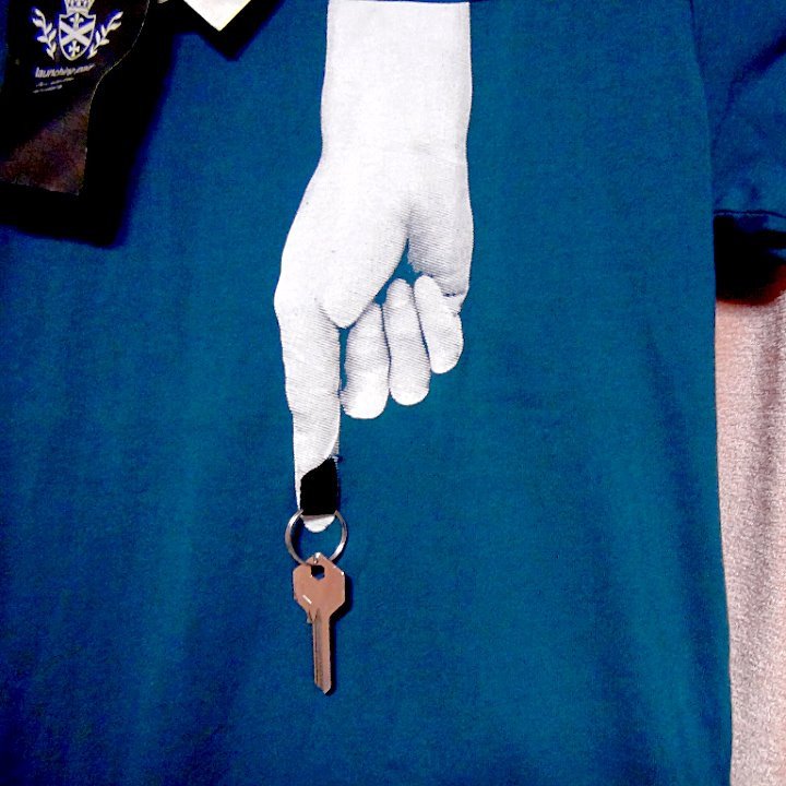 このTシャツは変ったシャツで鍵が付いています。飾りです。