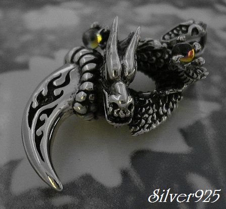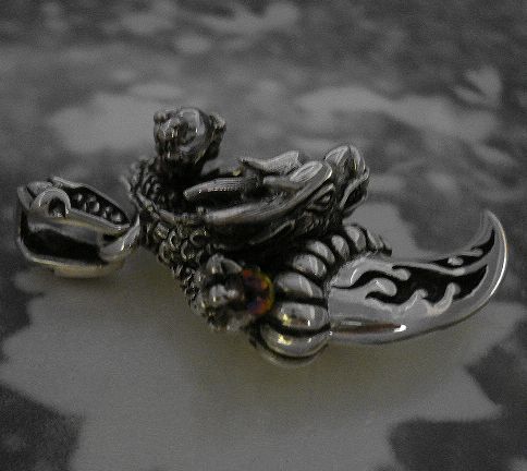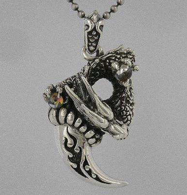 シルバー925銀の天然石オーロラ水晶キャッチ龍ドラゴン ペンダント/Bu-boon silver