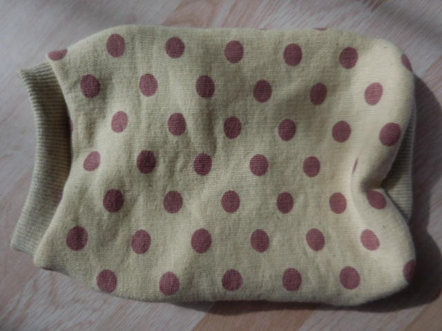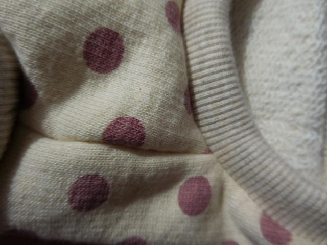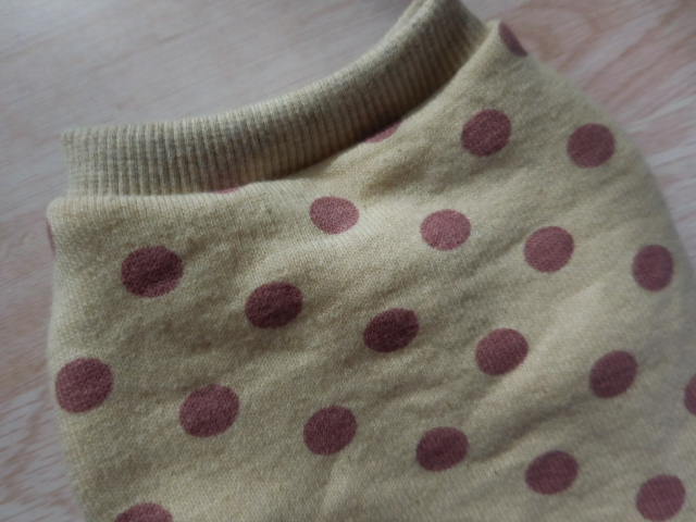 家庭用ミシンで作っているため、ニットの毛羽立ちがあります。