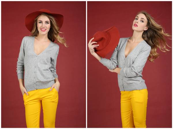 ふんわりと肌触りのよいカシミヤ混のカーディガンM 灰 | |||||||||||||||||||