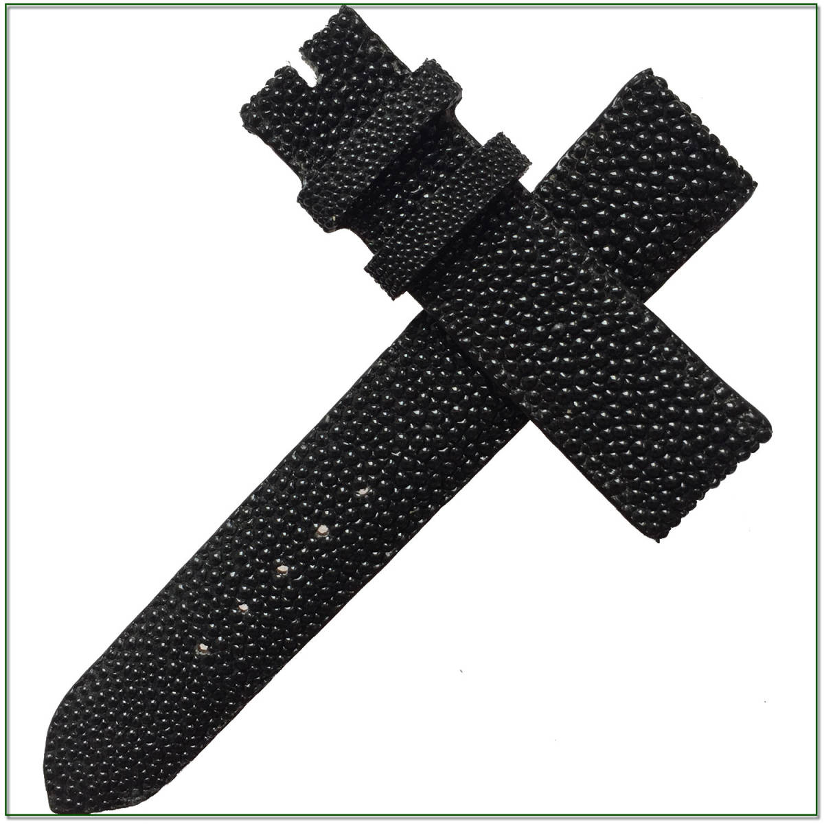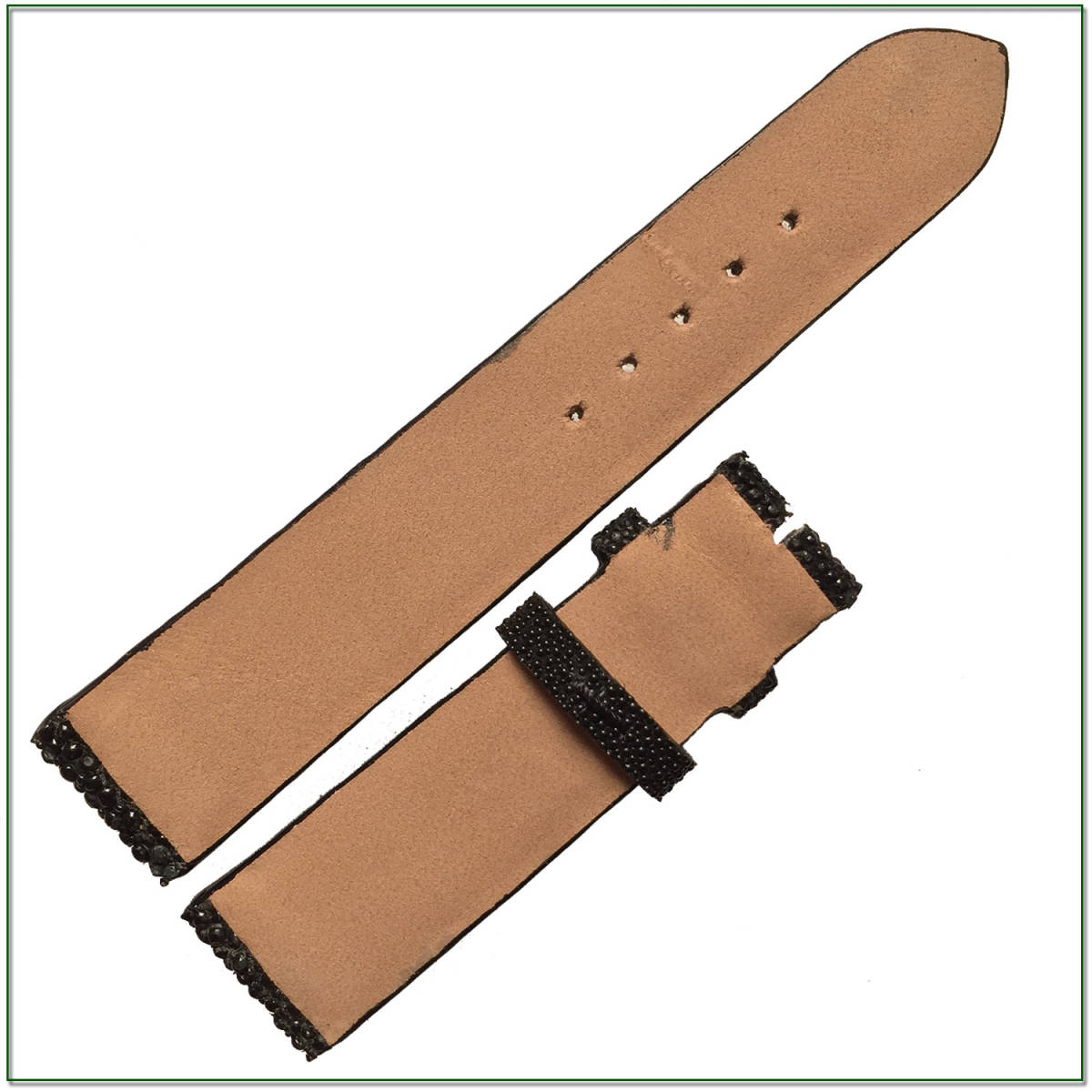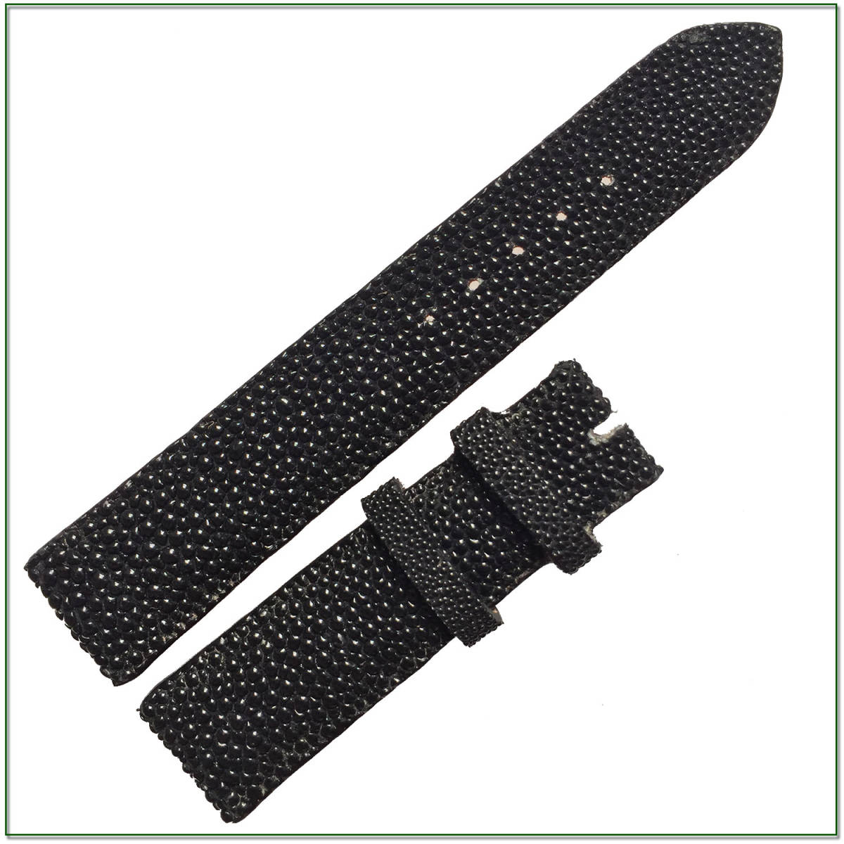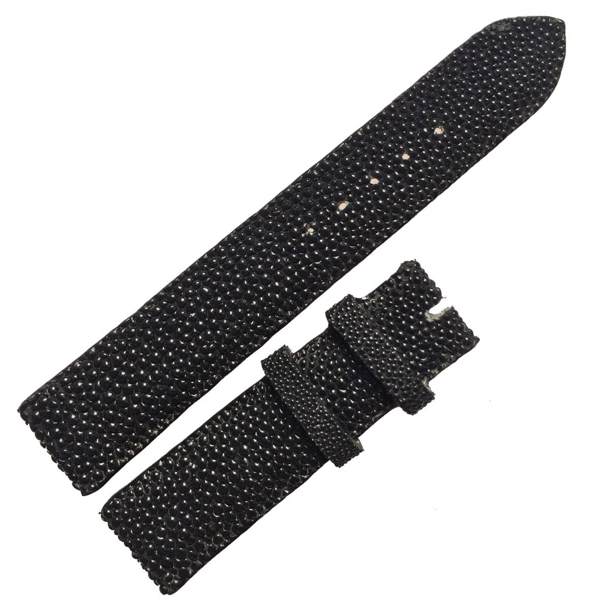 高級 1点物 20mm ITALY 本革 ガルーシャ 天然模様 黒色 時計ベルト ストレートタイプ エイ スティングレイ 革厚 STINGRAY