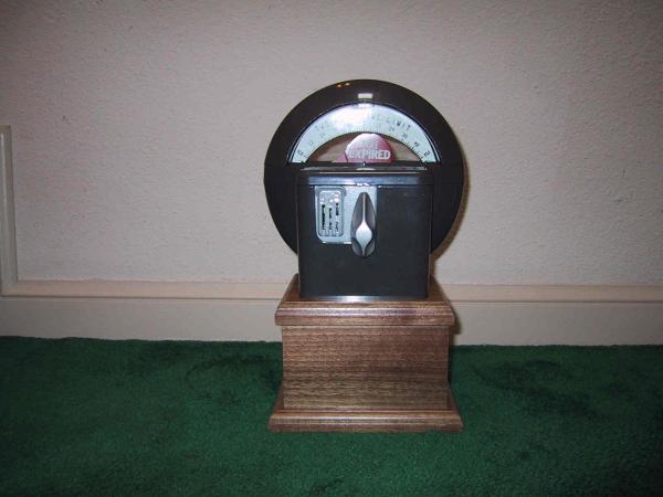 アメリカ製 本物のパーキングメーターを改造した卓上型の貯金箱です。