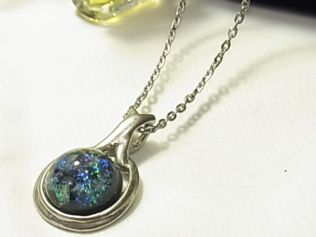 オーロラ―のように綺麗なストーン調 ラウンド型 ドーム型 世代を選ばないデザイン ロングネックレス◆◆