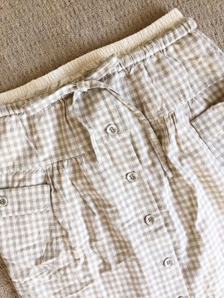 ベージュとオフホワイトのチェック柄でウエストはゴム入りで楽チンです♪