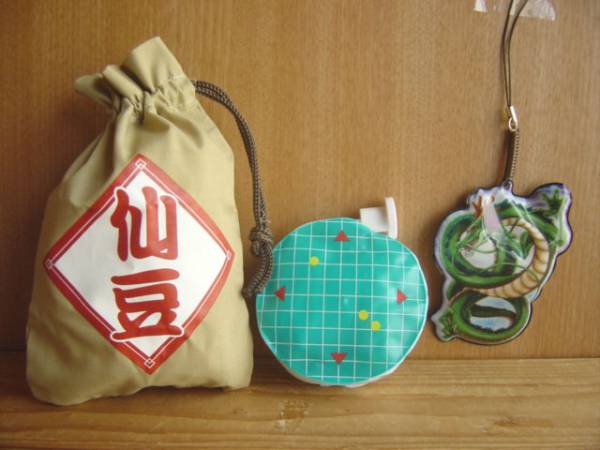 1.ドラゴンレーダー型ポーチ 2.神龍画面クリーナー 3.仙豆袋巾着 |