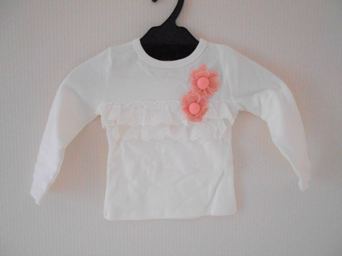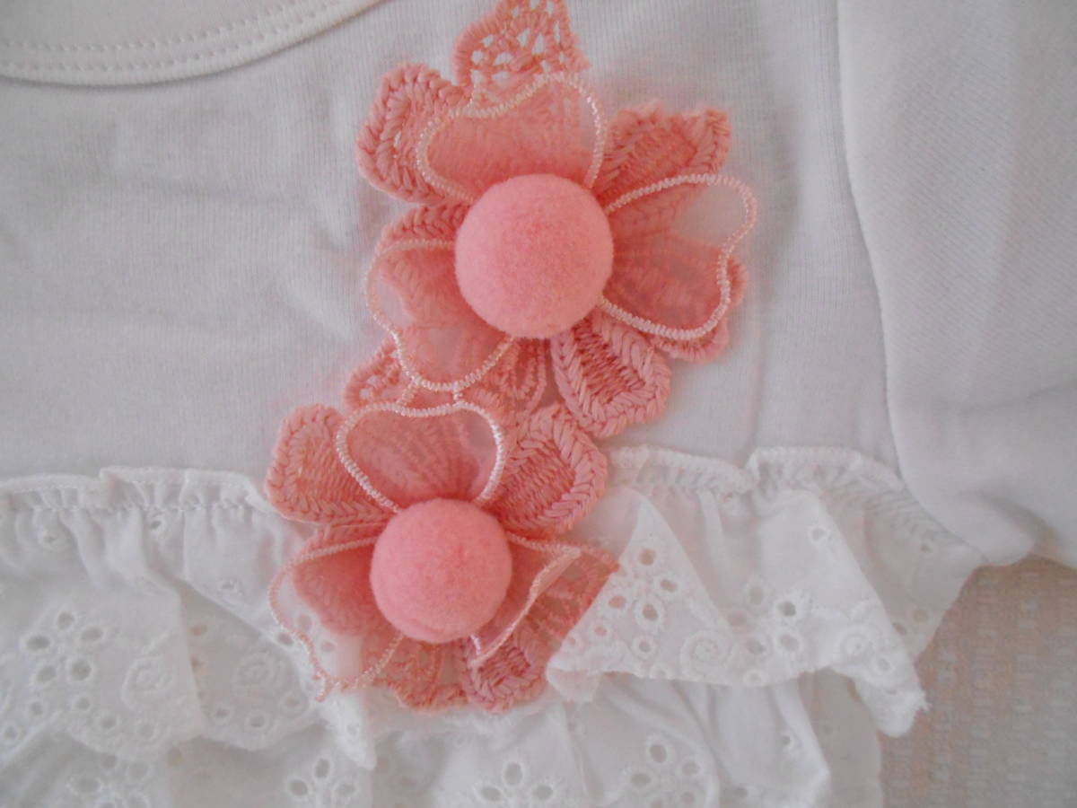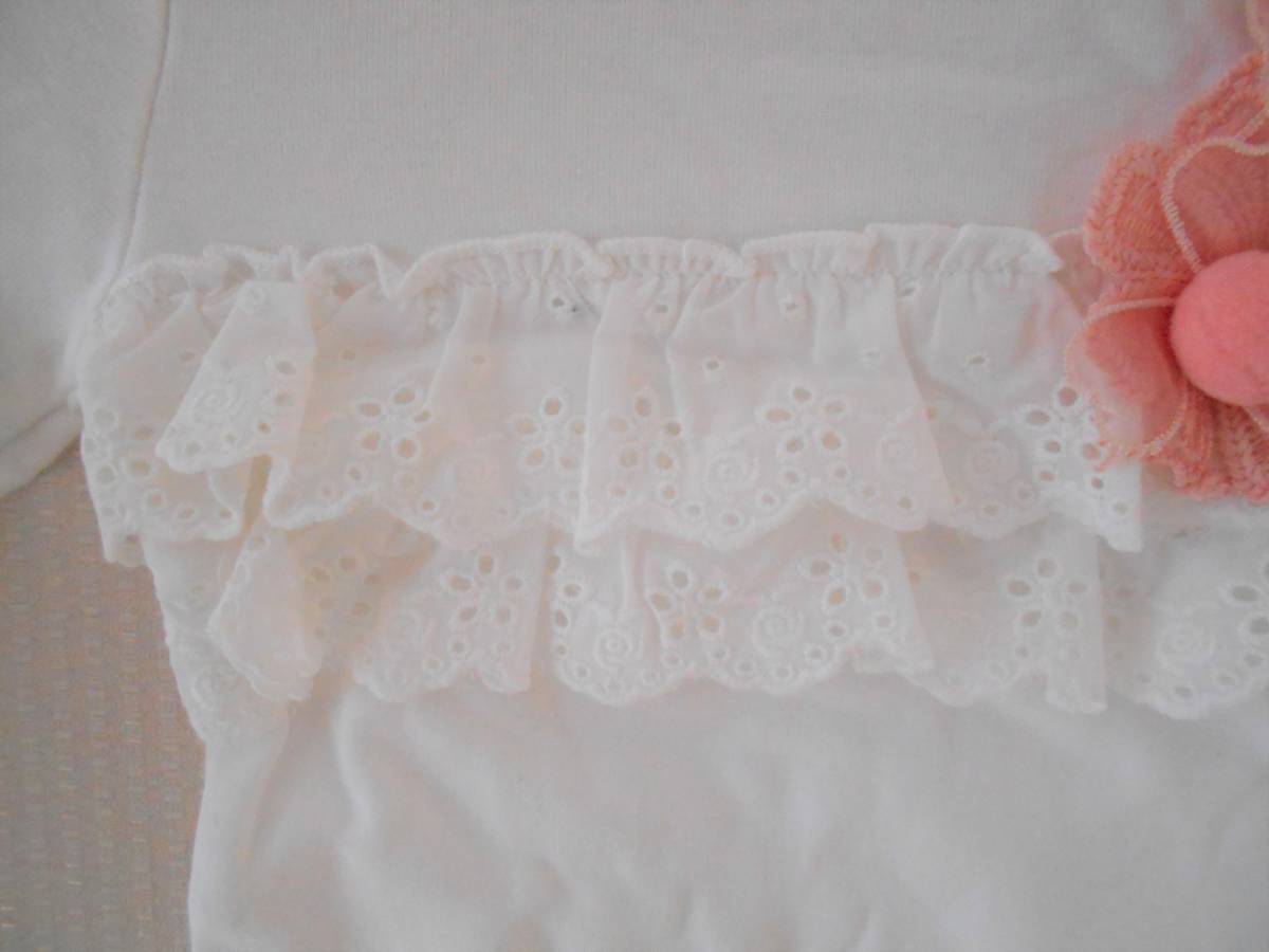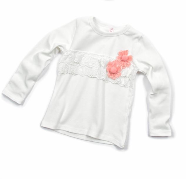 女の子らしいかわいいモチーフ編みのお花とレースの付いたロングTシャツ。