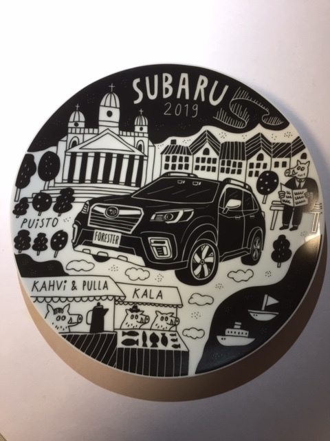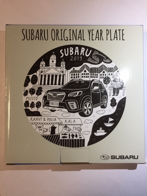 プレート裏面にテキスタイルブランド「カウニステ」のロゴが入ったSUBARU ORIGINAL YEAR PLATE(スバル オリジナル イヤー プレート)です。版画調の絵柄もメルヘンチックな中にFORESTER(新型フォレスター)がアンバランスなようで、逆に何とも温かみのある魅力的なベストマッチングな構図になっています。部屋の飾り、アクセント付けに最適です。非売品です。