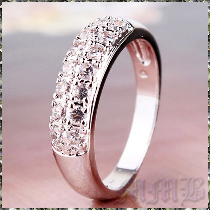 18K White Gold Filled Luxurious Crystal Cz エレガント 14 クリスタルCZ ホワイトゴールド 5mm リング です。