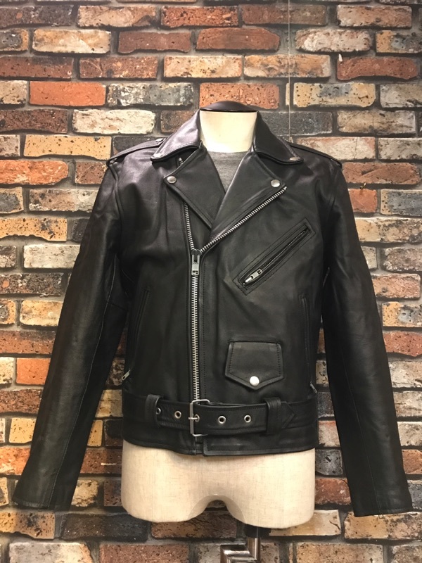 G672 メンズレザー HORN WORKS ホーンワークス 本革 革ジャン アメカジ ライダース バイカー ダブル ブラック 小さいサイズ (100)/ S