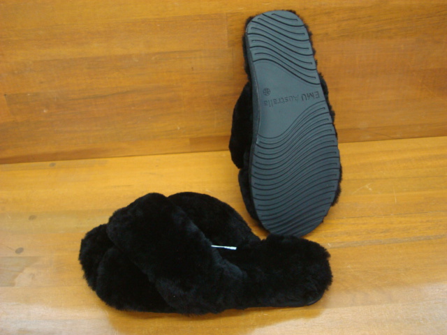 新品19 EMUシープスキンクロスファーサンダルMayberry 25cm Black