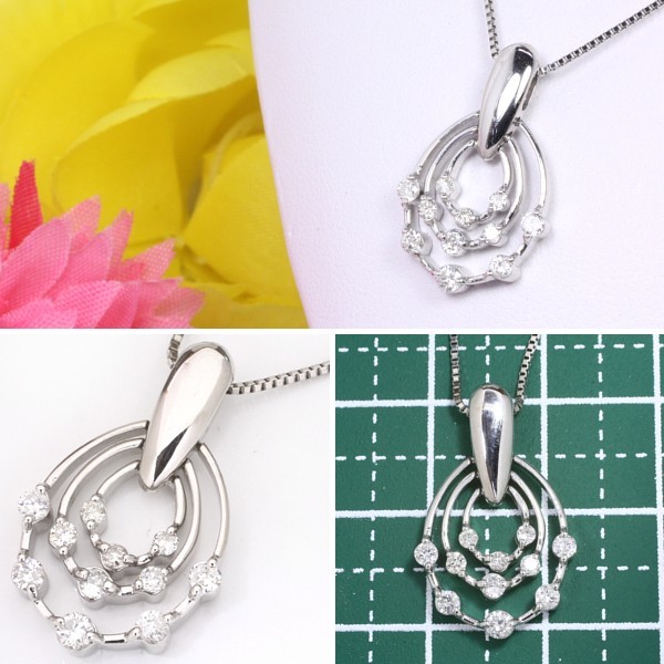 ■商品説明 3つの輪にダイヤモンドが配置されたゆらり揺れる素敵デザイン☆計11石のダイヤモンドが輝くのでとても綺麗ですね☆普段使いにもとても良い商品です。 通常ではあり得ないお値段ですがオークション特別価格としてご用意させて頂きました。早い者勝ちですのでお早めにどうぞ。 ■商品詳細 【地金】 K18WG 【中石】 ダイヤモンド0.3ct この商品写真は0.8mmのベネチアンチェーンで撮影しております *こちらの商品はペンダントトップの価格であり、チェーンは別売りとなります。チェーンも合わせてご購入希望の方は下記一覧表よりお好みの長さ太さでお選び頂けます。ご落札後の取引ナビにてご連絡下さい ■発送詳細 【ヤマト宅急便60サイズ】 送料はこちら 【レターパックプラス】 送料はこちら 2点以上ご購入の方は送料無料 目安としてご入金確認後5日以内に発送(一部お時間がかかる商品もございます) サイズ直しをご希望の場合はプラス1週間程度のお時間がかかります。 ■お支払い方法 ジャパンネット銀行 Yahoo!かんたん決済 ■リングサイズ直し料金 リングは有料にてサイズ直しが可能です。±3号までは3,000円、それ以上はデザインによって可能不可能もございますのでご相談下さい。サイズ直しにはプラス一週間前後のお時間がかかります。 ■注意事項 イメージ違い、入札間違い等のお客様都合によるキャンセルや返品は承っておりませんのでよくご確認の上ご入札下さいませ。サイズ直しや加工をしたものは返品不可となります。 石や真珠などは天然のため傷やインクルージョン、エクボ等が多少ございます。 こちらの商品は店頭や他ルートでも販売中です。十分に気を付けてはいますが稀に注文が重なってしまうケースが想定されます。ご落札頂いてもお取引できない可能性もあるとご了承下さいませ。質問欄より在庫確認をいただけますと確実です。 その他特記事項や連休中の発送について自己紹介欄に記載する場合があります。お手数ですがご確認のうえご入札下さい。 |