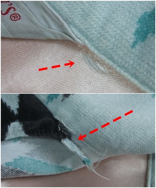 襟ぐり部分に黄ばみや生地が薄くなっています。