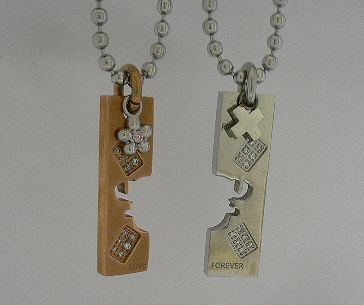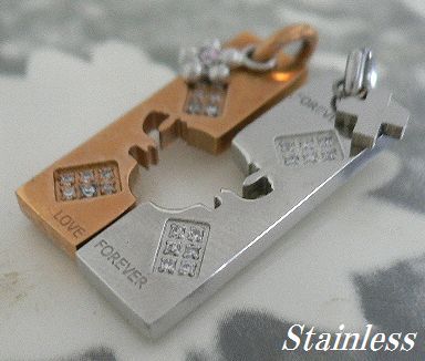 在庫処分★サージカル ステンレス製ジルコニア付LOVE+FOREVER印字プレート ペアペンダントset/ステンアクセALL50%OFF