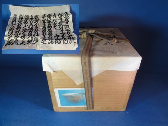 | ★商品説明★ | ◇ 古美濃茶碗 ◇ 銘「破れ」 ◇ 遠州好 押印 ◇ 仕立てのよい箱に納まっており 何が書かれているか解らない書付が底におさまっております。 ◇ サイズ 口径13.0cm 高さ7.5cm 高台径5.0cm 素人採寸につき誤差はお許しください。 ☆ タイトル表記、商品説明は箱書き等によりつけており 当方素人で真贋の保障はしかねます | |