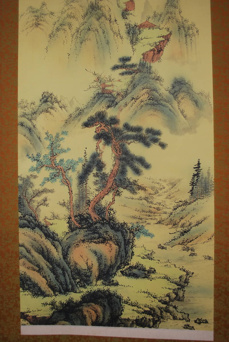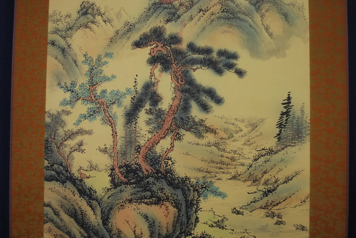 複製/如松/山水図/工芸品//掛軸☆宝船☆R‐160 J