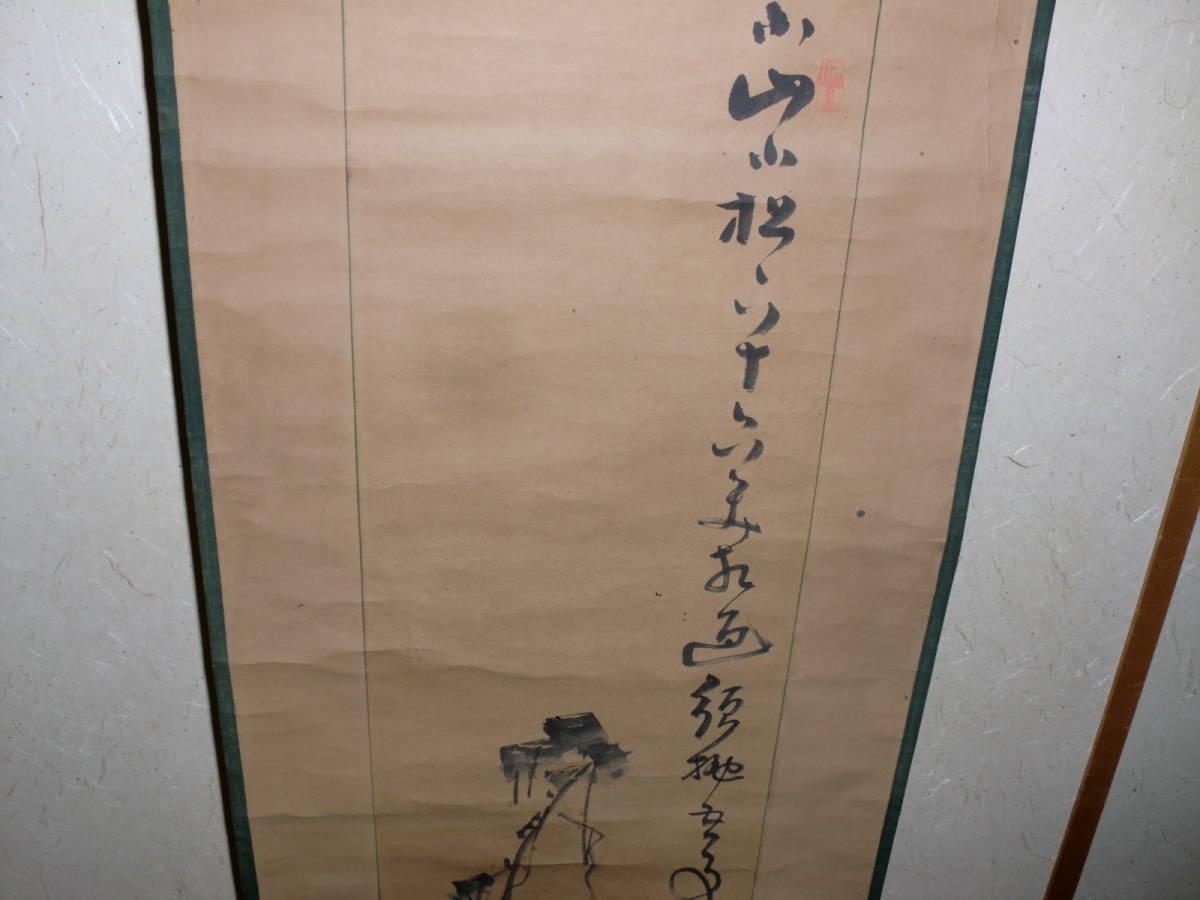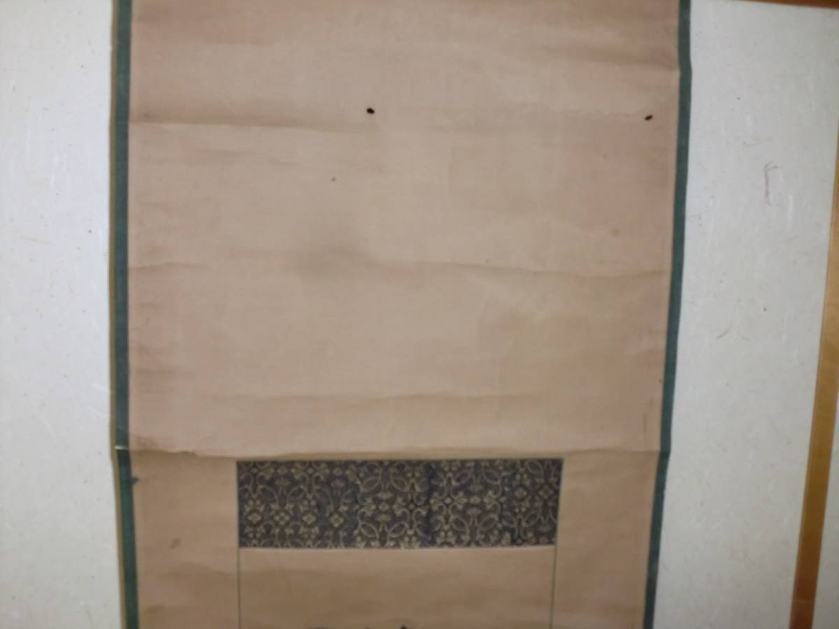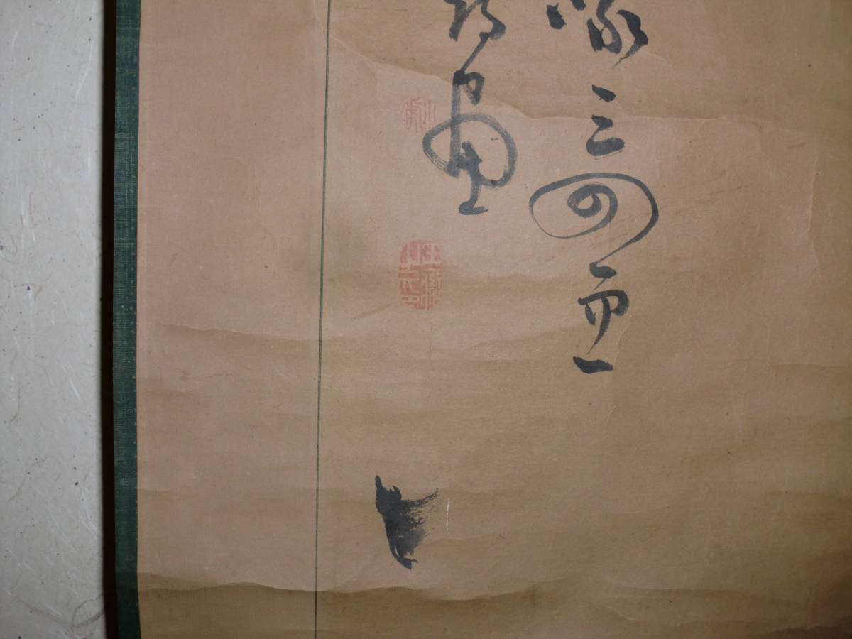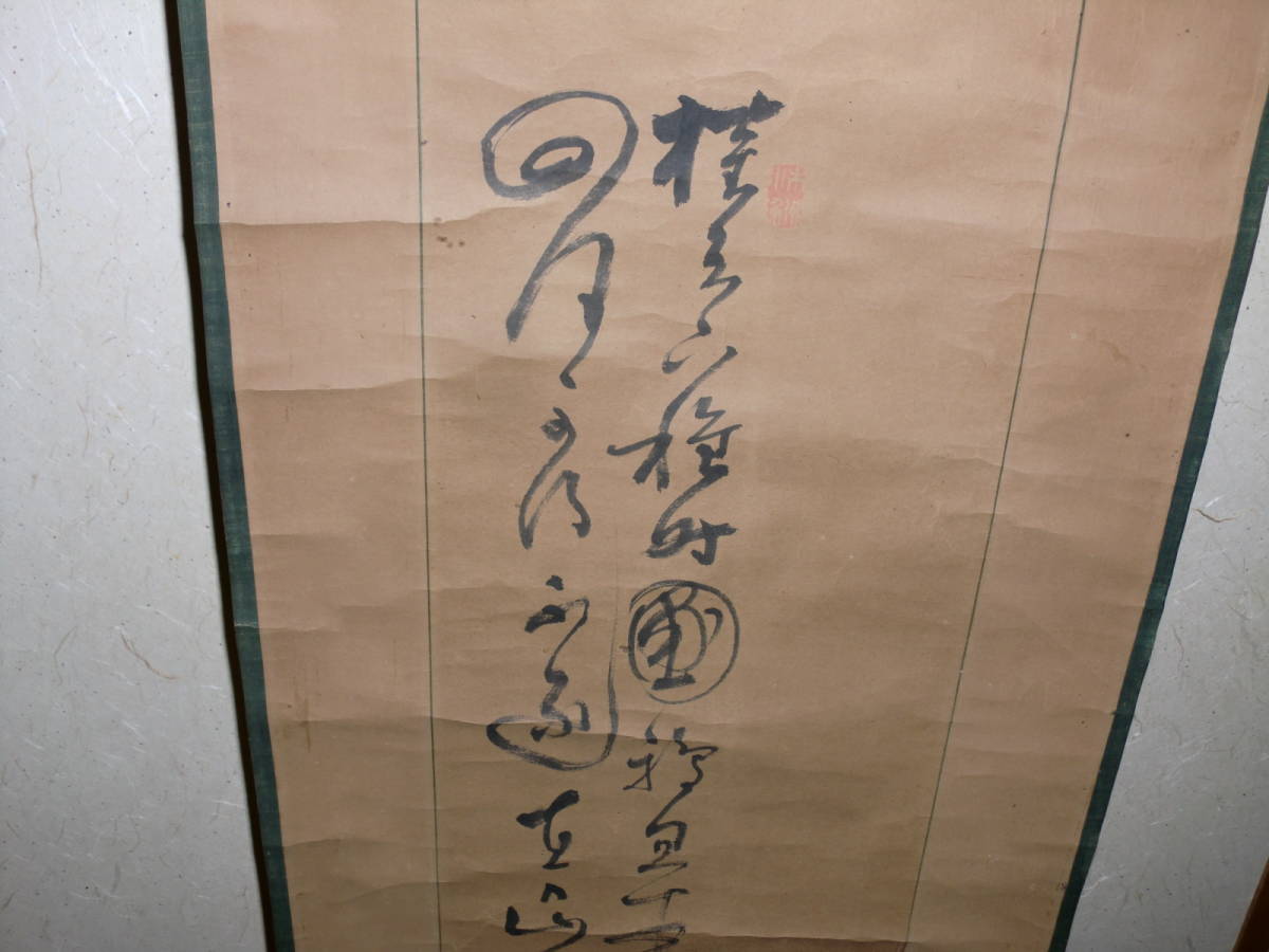 状態は、画像どおりですが、古ーい作品にて  権兵衛表装に一部切れ補修、全体に時代焼けはありますが、目立つ汚れ等のないアンテイークコンデションです。